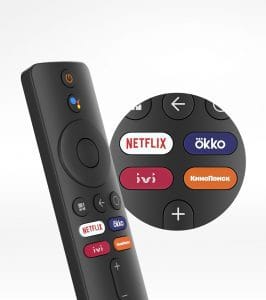 Подключение через Bluetooth позволяет управлять телевизором с помощью пульта ДУ из любой точки. Получайте доступ к Netflix, OKKO, IVI, КиноПоиск с помощью кнопок быстрого доступа на пульте ДУ.