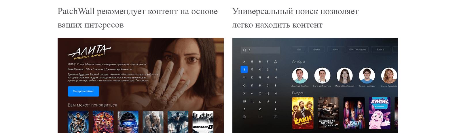 PatchWall рекомендует контент на основе ваших интересов. Чем больше вы смотрите Mi TV – тем точнее рекомендации!