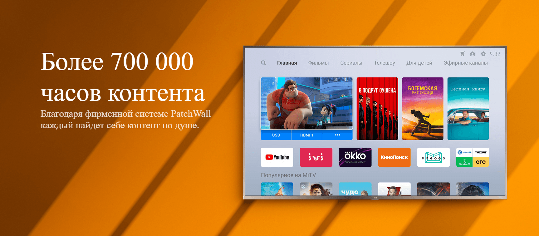 PatchWall рекомендует контент на основе ваших интересов. Чем больше вы смотрите Mi TV – тем точнее рекомендации!