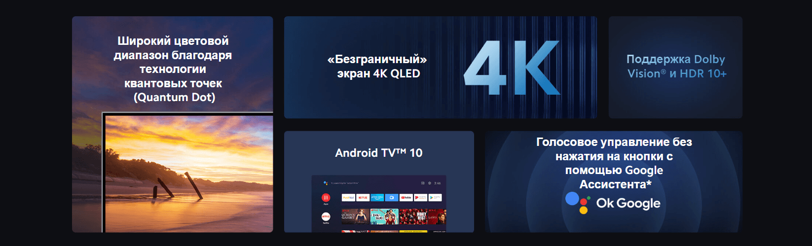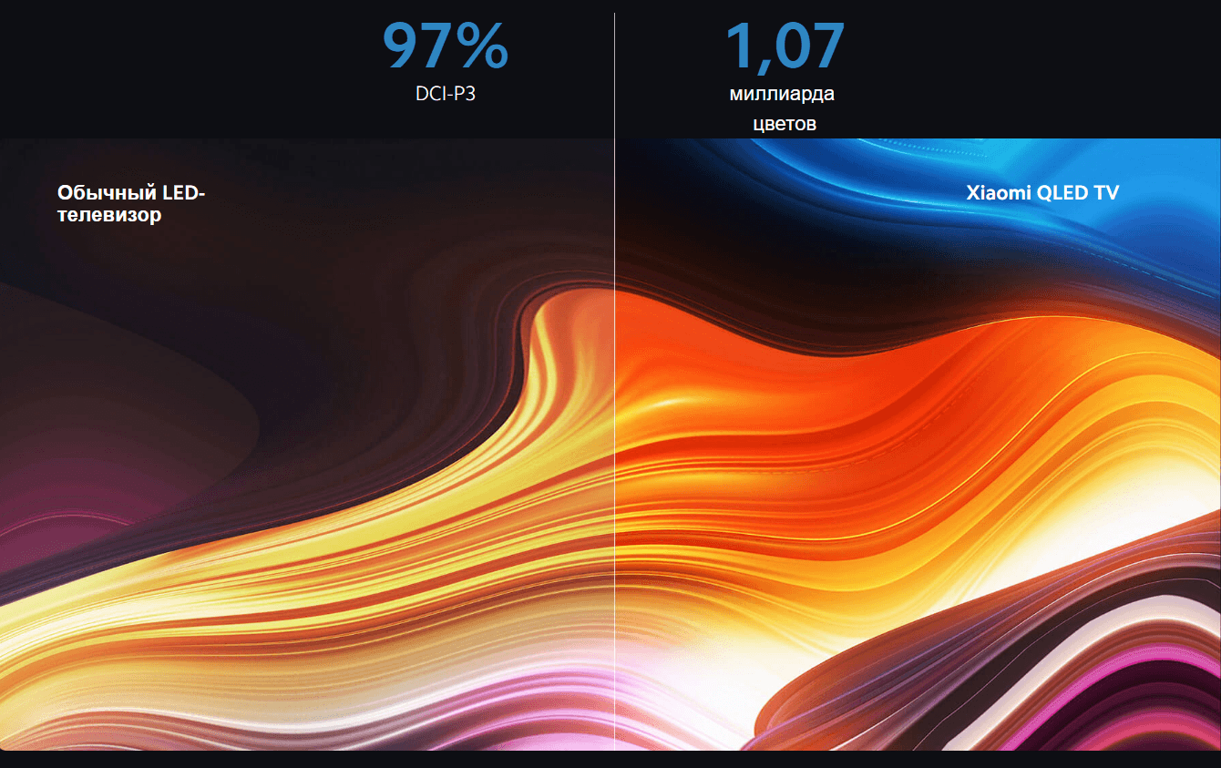 Xiaomi Q1E 55″ оснащен экраном QLED, используются квантовые точки наноразмера, которые позволяют значительно расширить цветовую гамму и улучшить качество изображения, делая его ярче и реалистичнее.