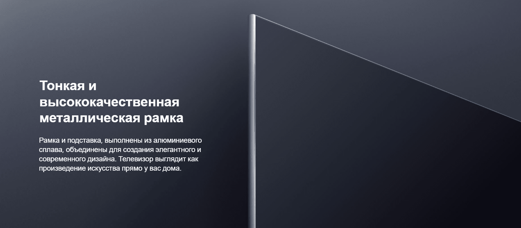 Безрамочный дизайн обеспечивает более высокое соотношение размера экрана, для более реалистичного изображения и приятного просмотра. Когда экран включен, практически невозможно заметить границу изображения, что позволяет наслаждаться более чистым изображением.