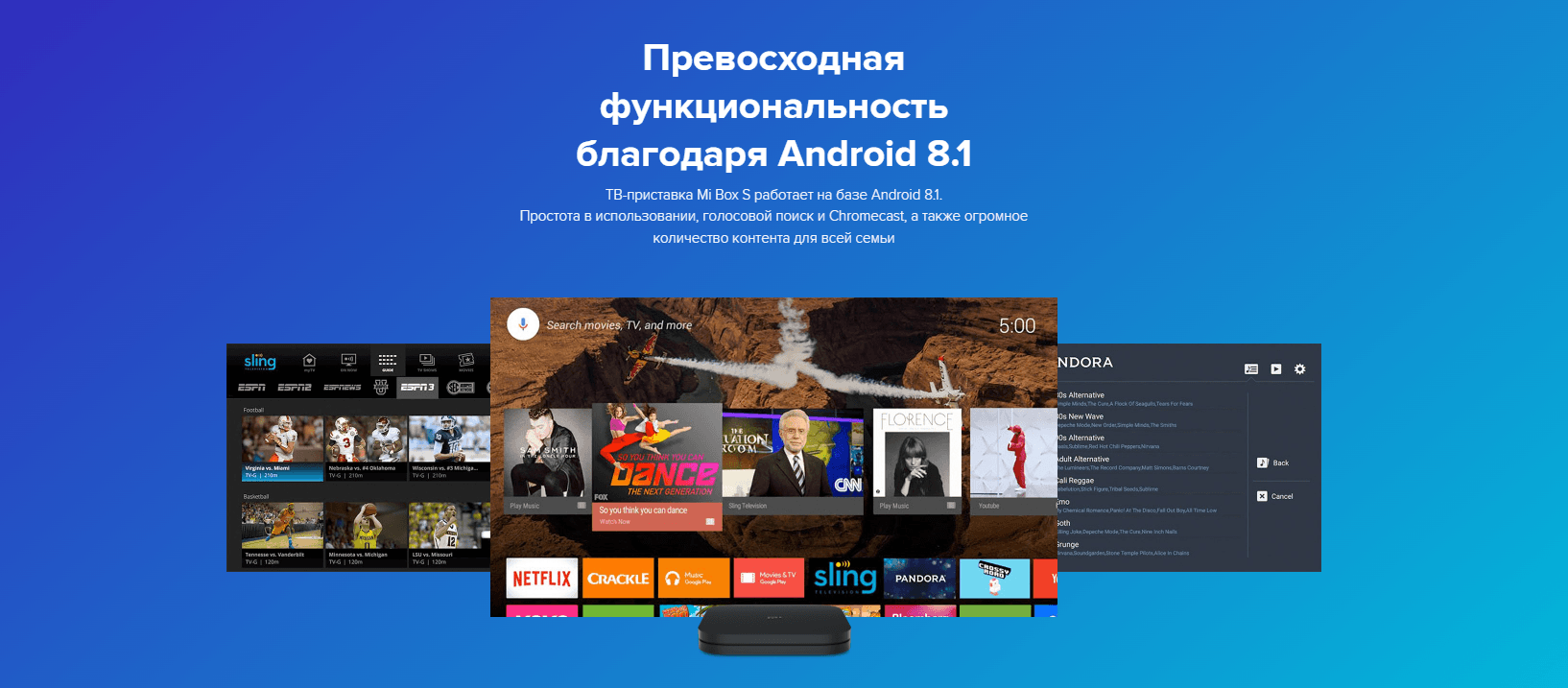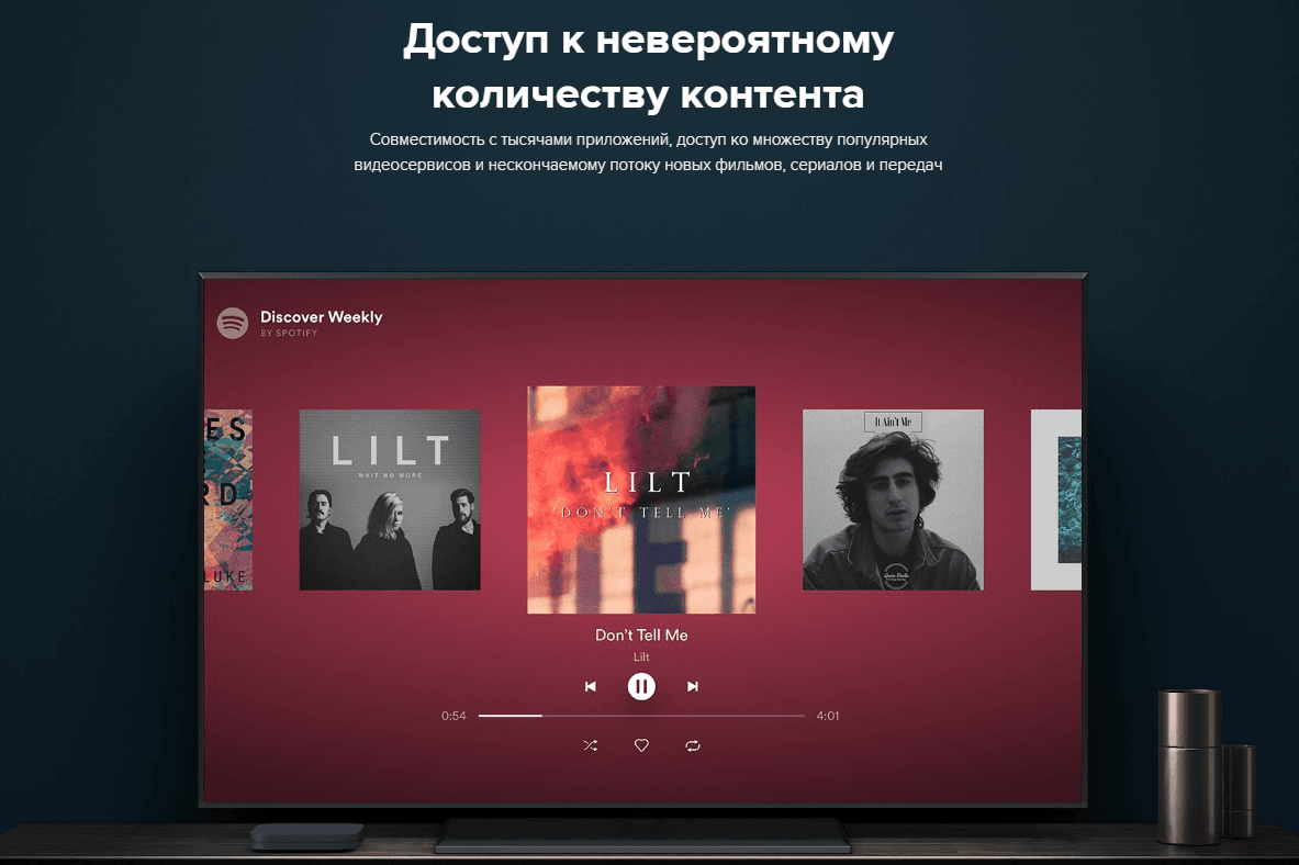 Совместимость с тысячами приложений, доступ ко множеству популярных видеосервисов и нескончаемому потоку новых фильмов, сериалов и передач.