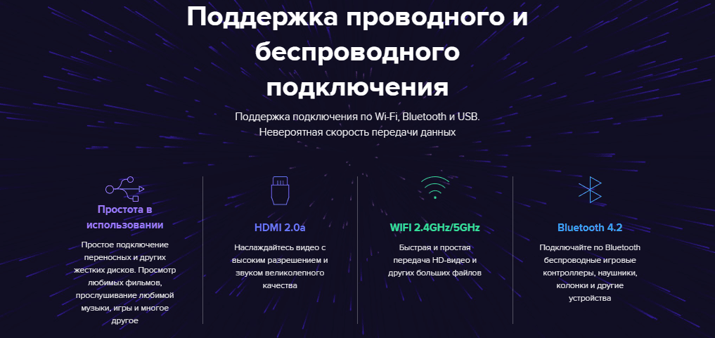 Поддержка подключения по Wi-Fi, Bluetooth и USB. Невероятная скорость передачи данных.
