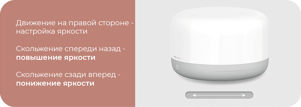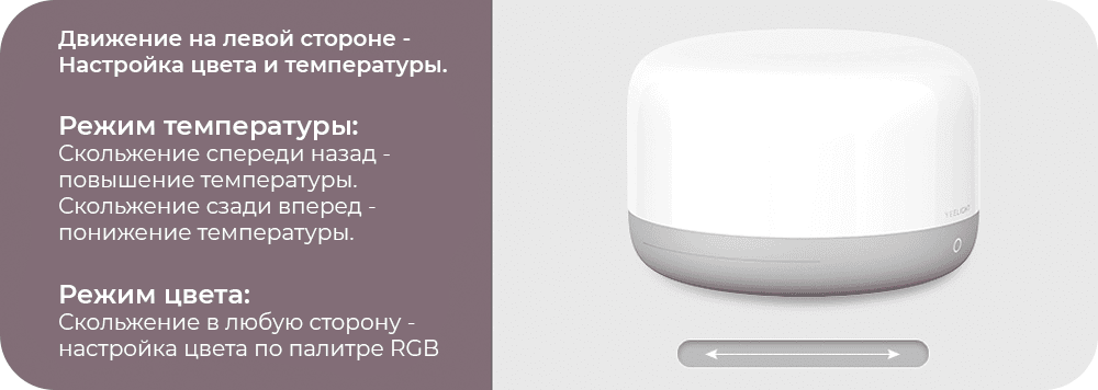 Если одновременно зажать на 5 секунд кнопку включения и полоску регулировки яркости до момента, пока светильник не начнет автоматическую смену цвета, светильник перезагрузится и вернется к заводским настройкам.