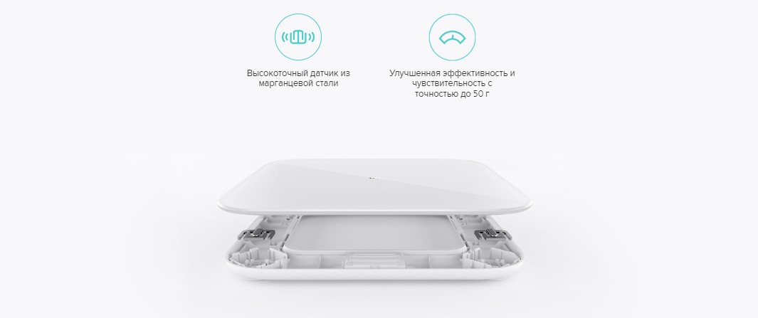 В весах Mi Smart Scale 2 используется высокоточный датчик из марганцевой стали, который может точно распознавать незначительные изменения веса с точностью до 50 г.