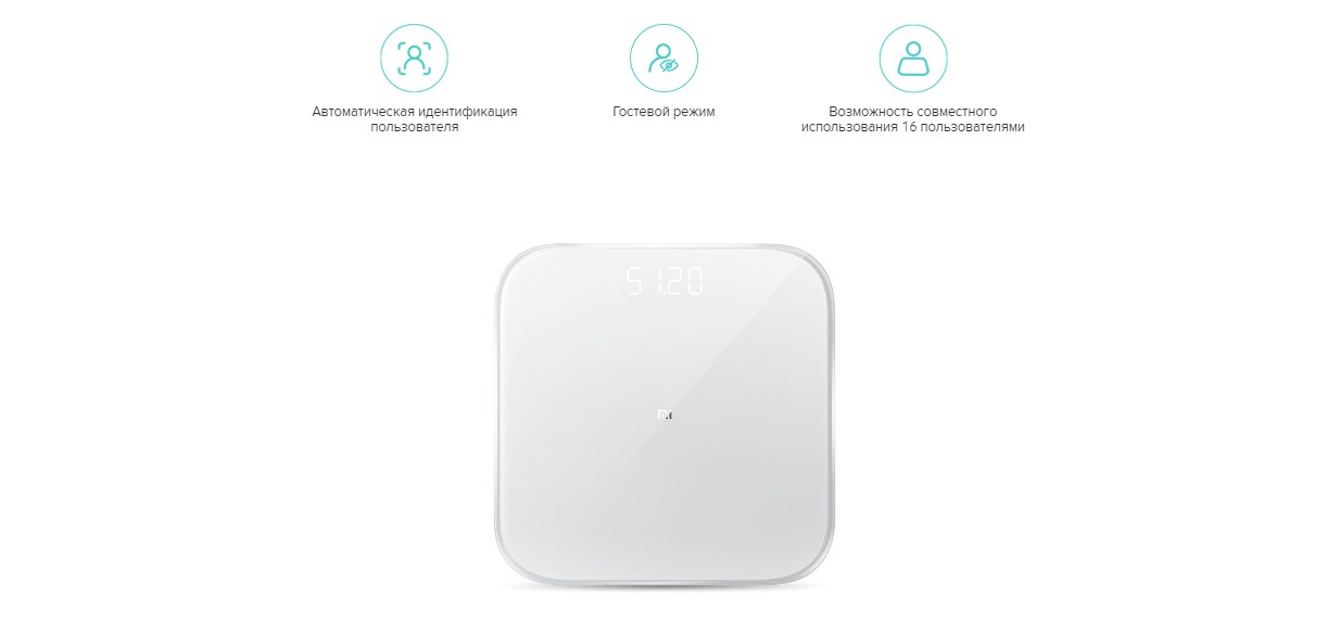 Весы Mi Smart Scale 2 могут автоматически идентифицировать членов семьи на основе данных тела и поддерживают до 16 пользователей, если устройство используется всей семьей. Также поддерживается гостевой режим, чтобы измерения других людей можно было выполнять без сохранения.