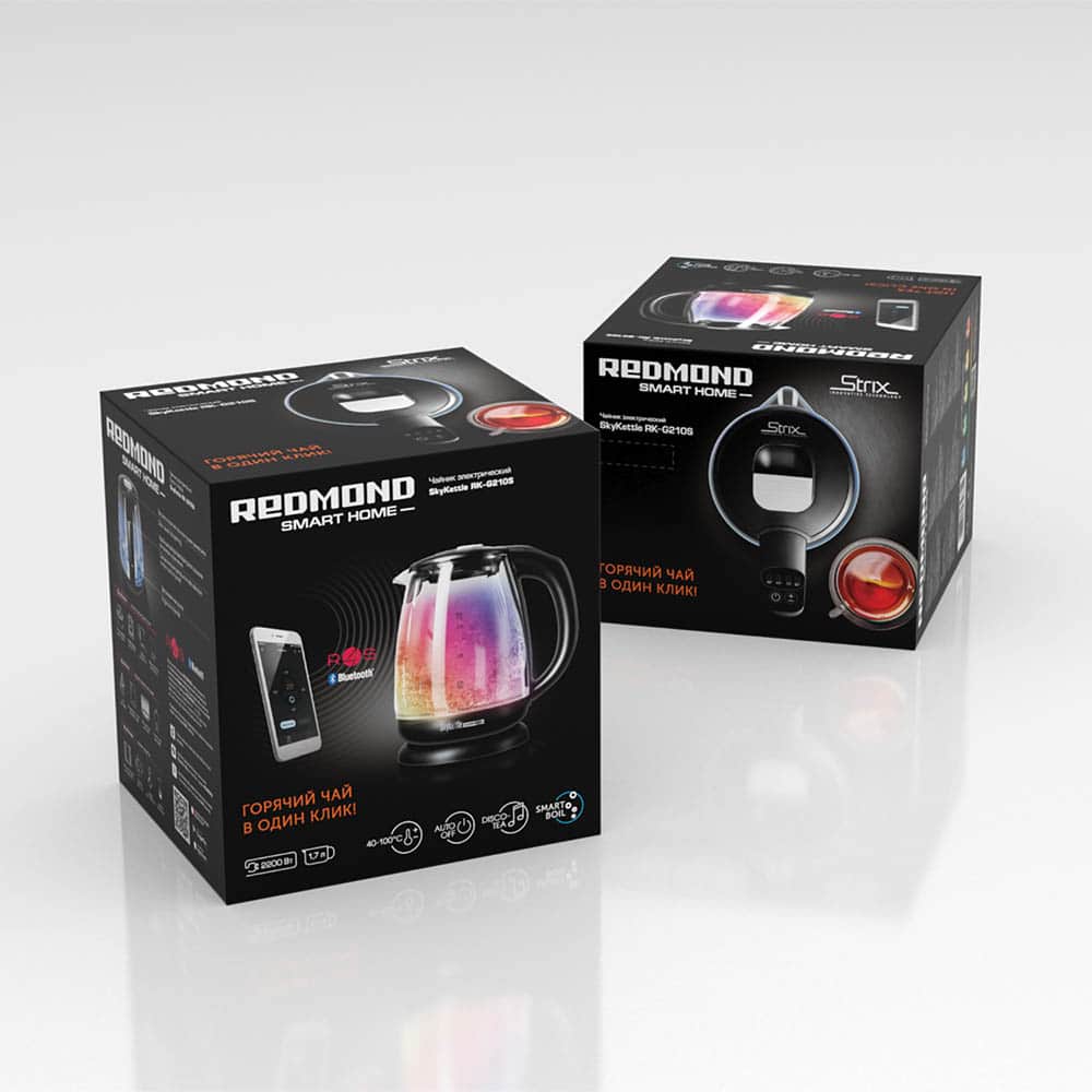 REDMOND RK-G210S – электрический чайник с технологией дистанционного управления через мобильное приложение Ready for Sky, а также с помощью голосовых команд Алисе – ассистенту, встроенному в приложения Яндекс.