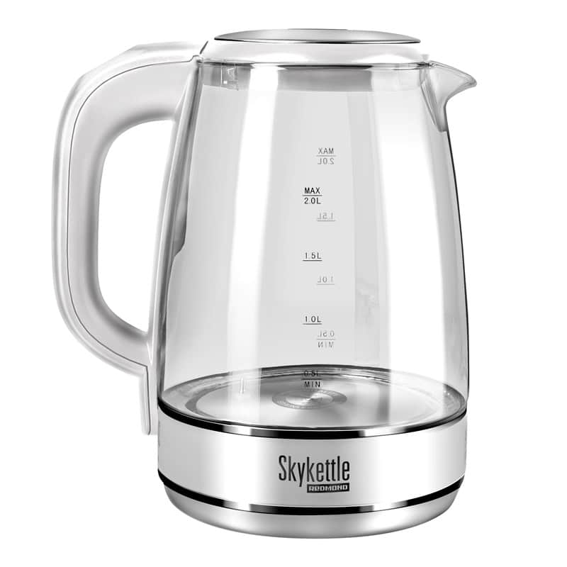 Умный световой чайник REDMOND SkyKettle G201S – больше чем просто чайник! Это ультрамодный высокотехнологичный гаджет с оригинальным свечением и дистанционным управлением со смартфона. Через приложение Ready for Sky в smart чайнике можно подогреть воду до нужной температуры, настроить любой цвет подсветки и сделать так, чтобы стеклянный корпус и вода в нем переливались всеми цветами радуги – при нагреве, через определенные промежутки времени и даже под музыку!