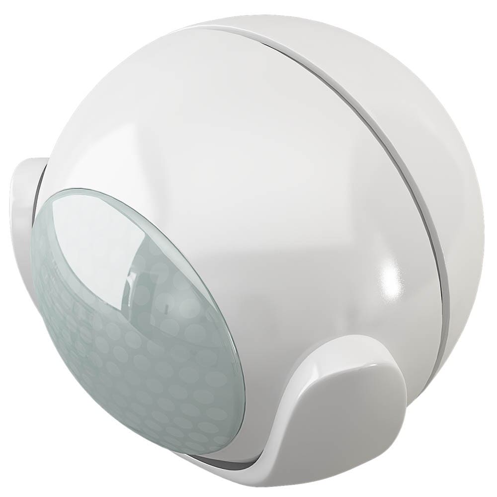 - Удобство крепления и широкие возможность настройки. Корпус датчика выполнен в форме шара, свободно вращается в крестообразном креплении, что позволяет легко и достаточно точно настраивать зону срабатывания.