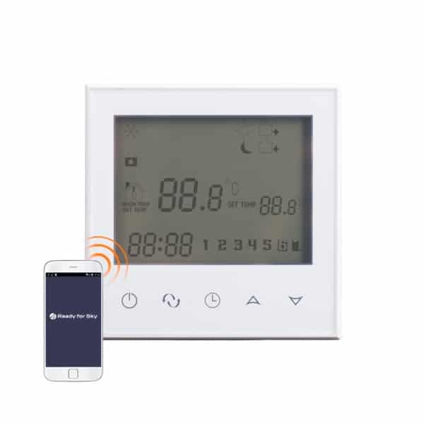 Чтобы дистанционно управлять системами обогрева помещений – установите бесплатное мобильное приложение Ready For Sky на смартфон. В приложении вам будут доступны все возможности умного регулятора для теплого пола: настройка температуры и режимов работы, блокировка панели управления. Чтобы осуществлять дистанционное управление с любого расстояния через Интернет – установите умный центр управления SkyCenter 11S. Для контроля на расстоянии до 15 метров используйте сеть Bluetooth.
