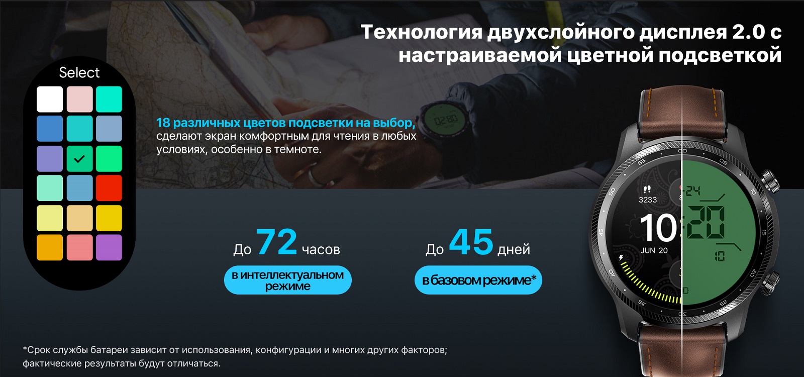 Есть второй дисплей, который отображает информацию при бездействии или при тренировках.