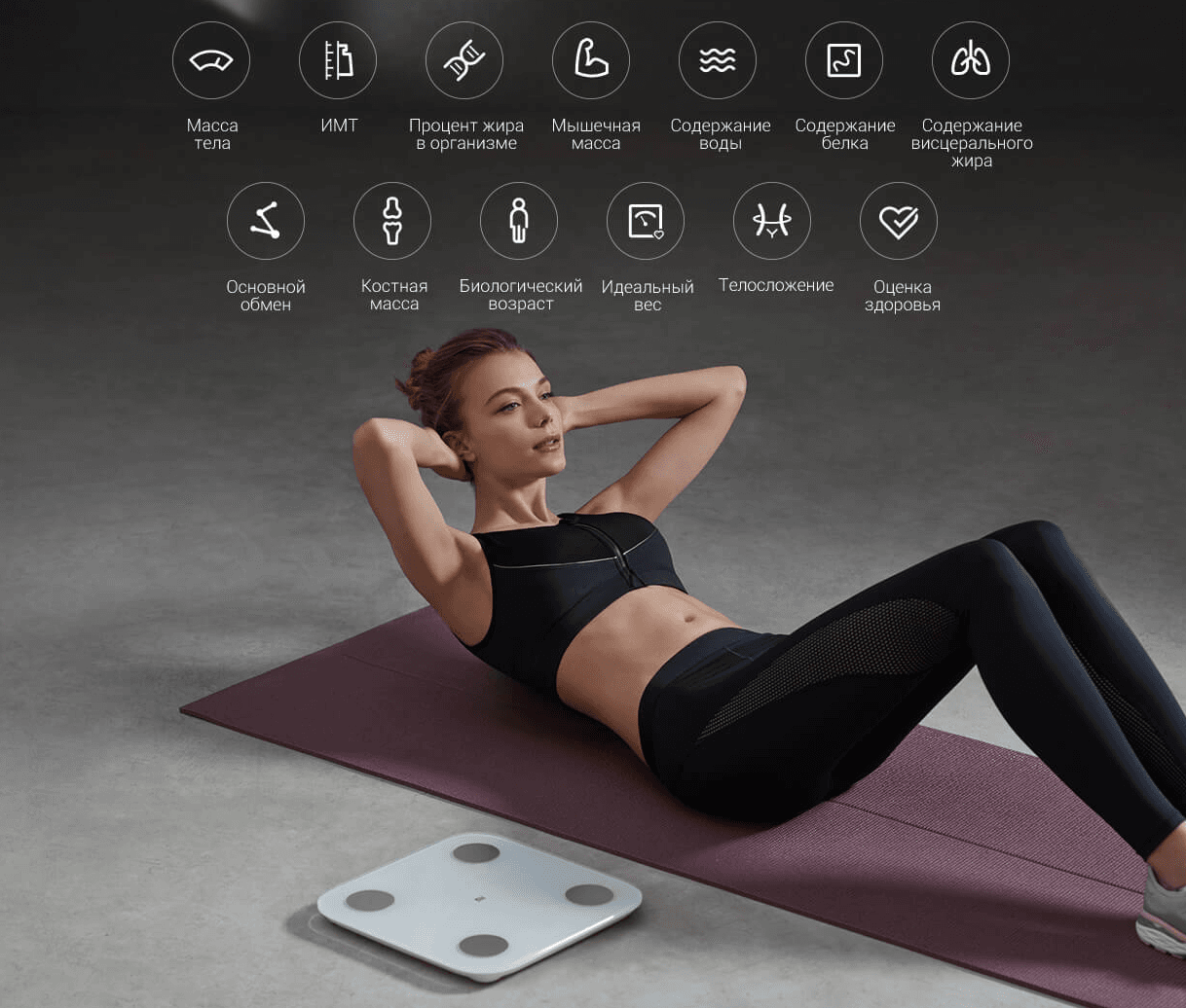 Высокоточный чип BIA позволяет измерять 13 различных параметров вашего тела, включая вес, ИМТ, процент жира в организме, мышечную массу, содержание воды, содержание белка, содержание висцерального жира и основной обмен.