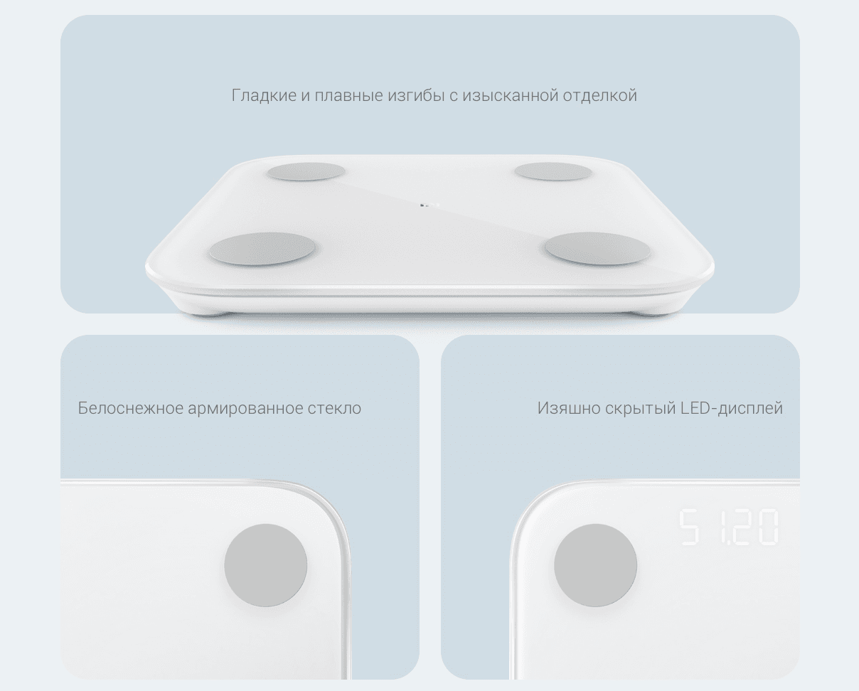 Весы Mi Body Composition Scale 2 автоматически переключаются между динамическим и статическим режимами взвешивания. Минимальный взвешиваемый вес – 100 г. Помимо взвешивания в динамическом режиме, вы также можете использовать статический режим для взвешивания фруктов, овощей или посылок.
