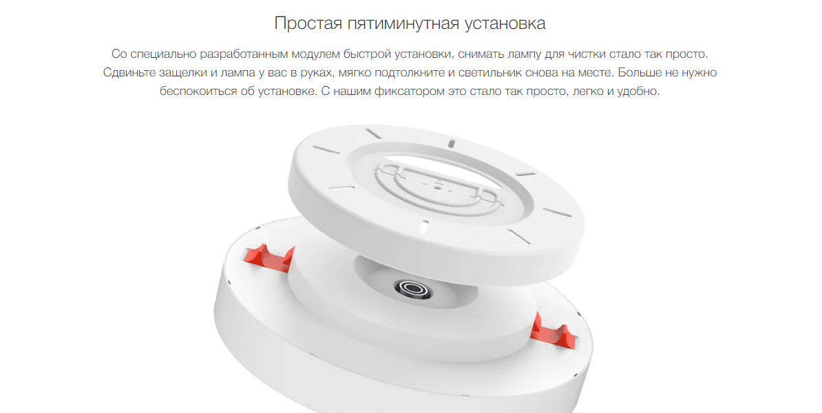 Со специально разработанным модулем быстрой установки, снимать лампу для чистки стало так просто. Сдвиньте защелки и лампа у вас в руках, мягко подтолкните и светильник снова на месте.