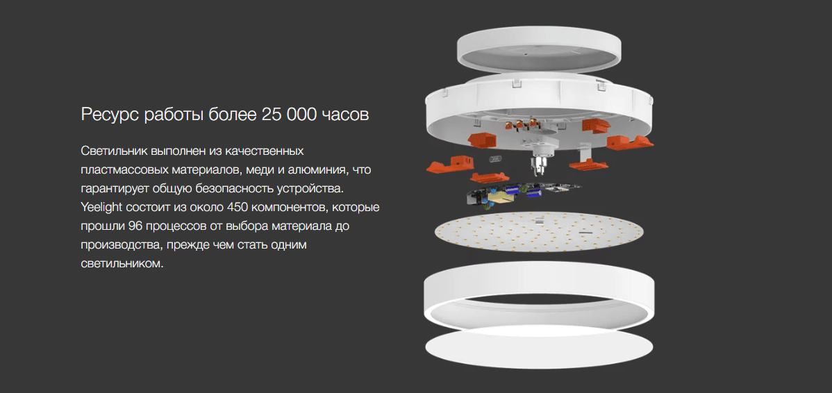 | Комплектация | Умный потолочный светильник Yeelight Smart LED ceiling light (YXDC0220002WTGL), пульт ДУ, крепежный материал, руководство пользователя |