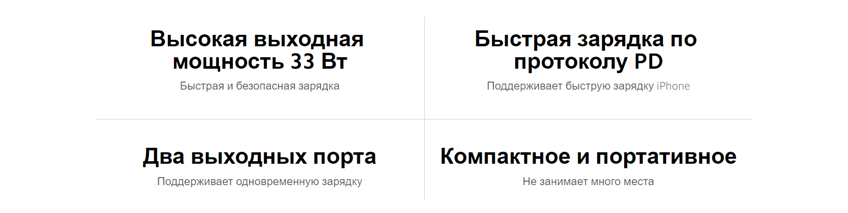 Компактная и портативная конструкция позволяют зарядному устройству поместиться в любой сумке — оно не занимает много места, а в поездке вам хватит даже одного такого устройства.