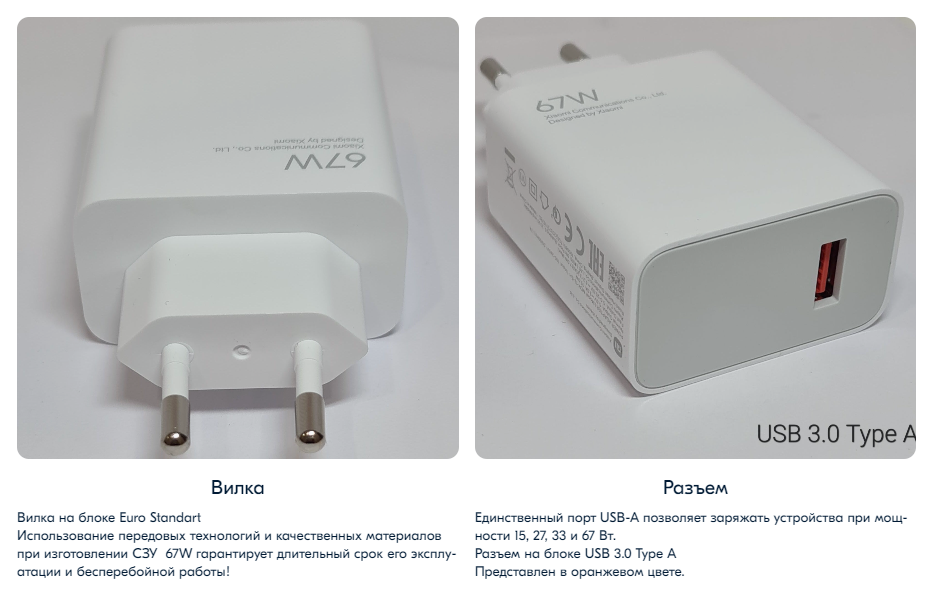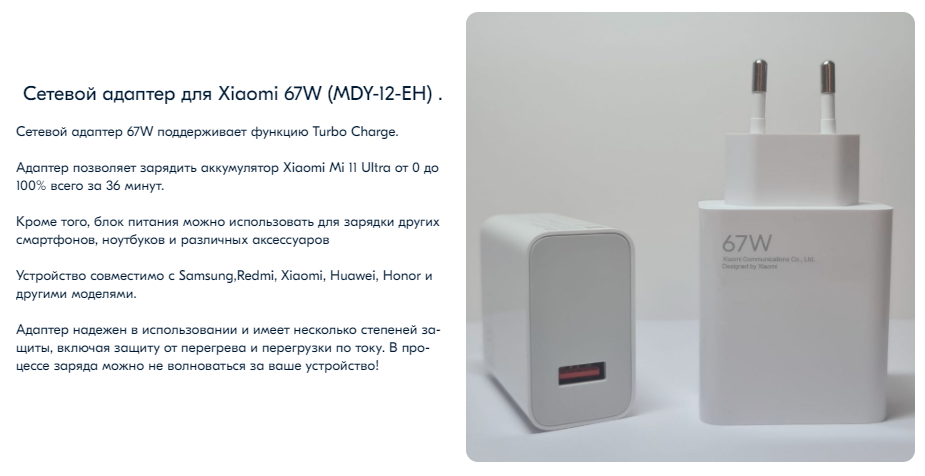 Сетевое зарядное устройство Xiaomi 67W Charging Combo (Type-A) MDY-12-EH (BHR6035EU) – идеальное решение для быстрой и эффективной зарядки ваших устройств. С его помощью можно заряжать смартфоны, планшеты, гаджеты и любые другие устройства, поддерживающие USB Type-A. Устройство обеспечивает максимально быструю скорость зарядки до 67 Вт и обладает встроенной системой защиты от перегрева, перегрузки и короткого замыкания. Это компактное, легкое и легко транспортируемое устройство, с которым у вас всегда будет энергия под рукой!