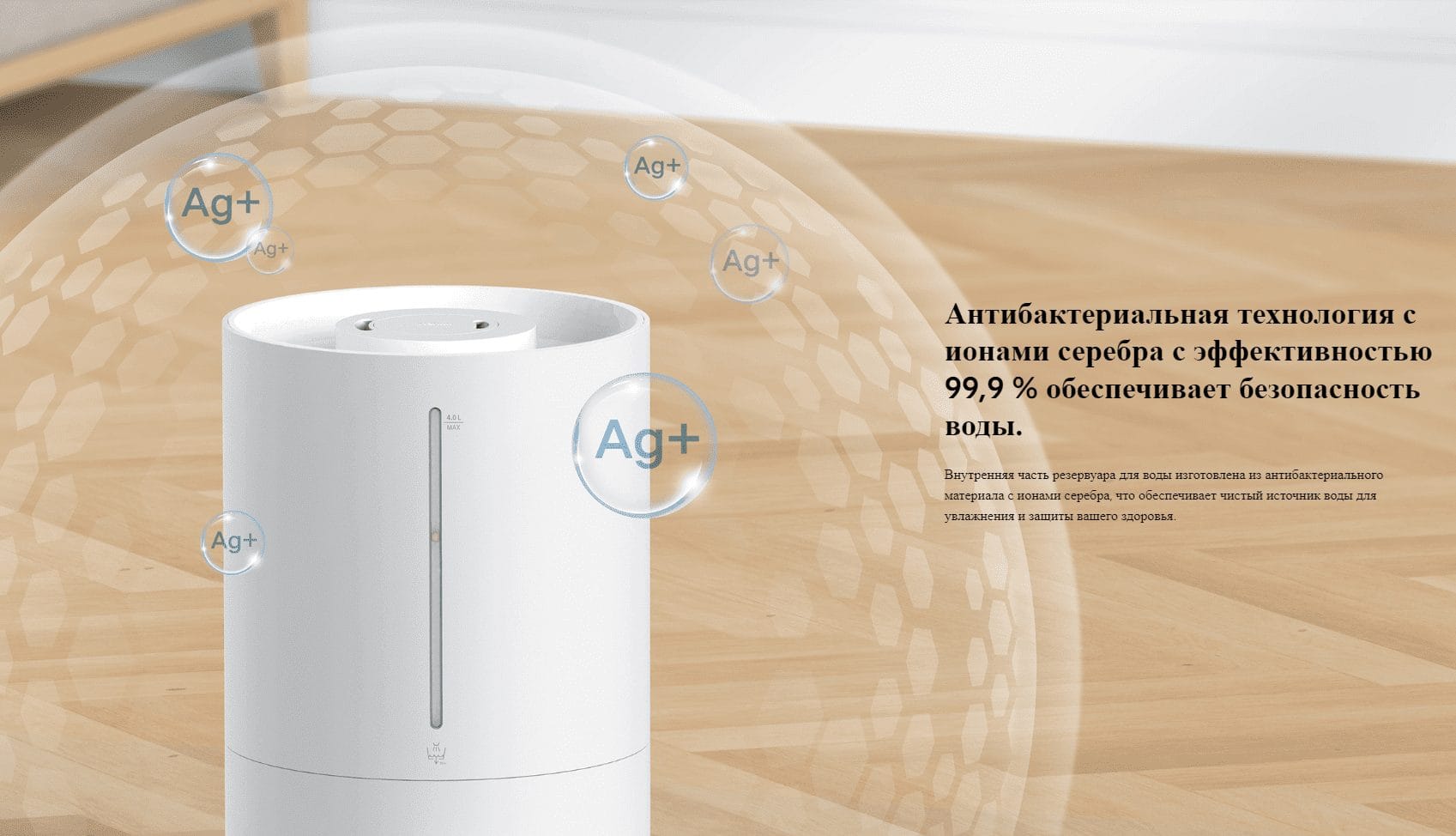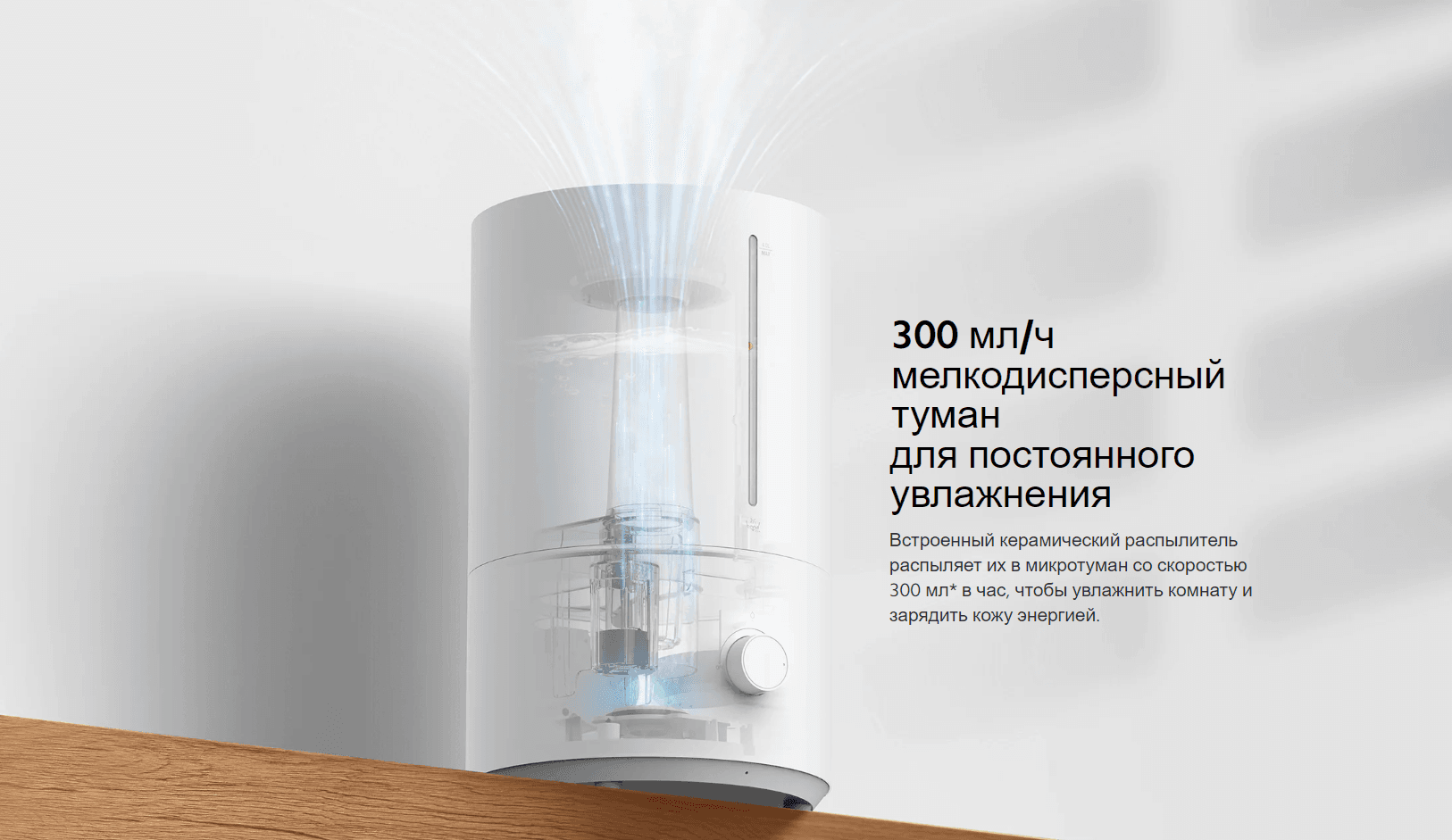 4 л воды эквивалентны 16 бутылкам воды по 250 мл, которые будут непрерывно увлажнять воздух в течение 30 часов. Нет необходимости часто доливать воду.