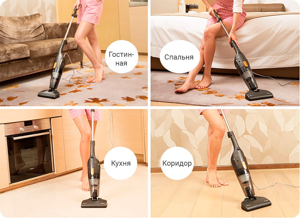 В комплектации Deerma Corded Hand Stick Vacuum Cleaner предусмотрены три профессиональные насадки: для пола, для мягкой мебели и для щелей. Таким образом, вы сможете одним пылесосом устранить грязь и в салоне автомобиля, и на разных полках, и в самых труднодоступных местах.