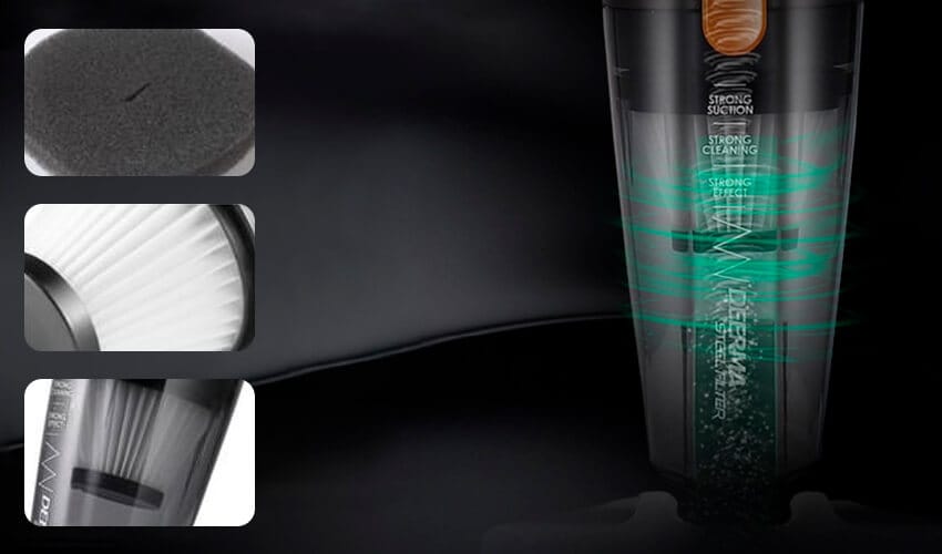 Внешний вид ручного пылесоса действительно приковывает к себе внимание. Модель выполнена в премиальной цветовой гамме – черное золото, придающее устройству стильный и при этом строгий дизайн. В нем вы не найдете каких-то лишних деталей, и именно поэтому этот пылесос подойдет абсолютно каждому. Компактный размер без труда позволит хранить и транспортировать устройство, позволяя воспользоваться им где и когда угодно.