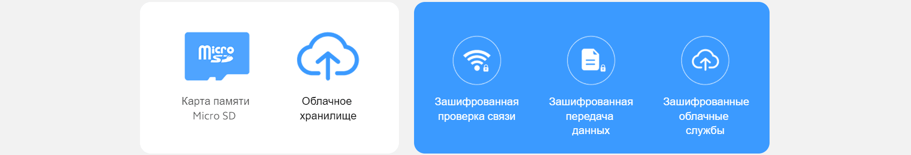 Локальная карта Micro SD и облачное хранилище обеспечивают вас двумя разными решениями для хранения данных. Для обеспечения полной защиты данных для вашей конфиденциальности используется трехкратное шифрование: зашифрованная проверка связи, зашифрованная передача данных и зашифрованные облачные службы.