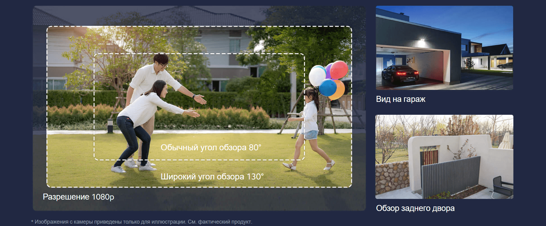 Снимайте больше пространства с широким углом обзора 130° и просматривайте происходящее вокруг вашего дома в высоком разрешении 1080p.