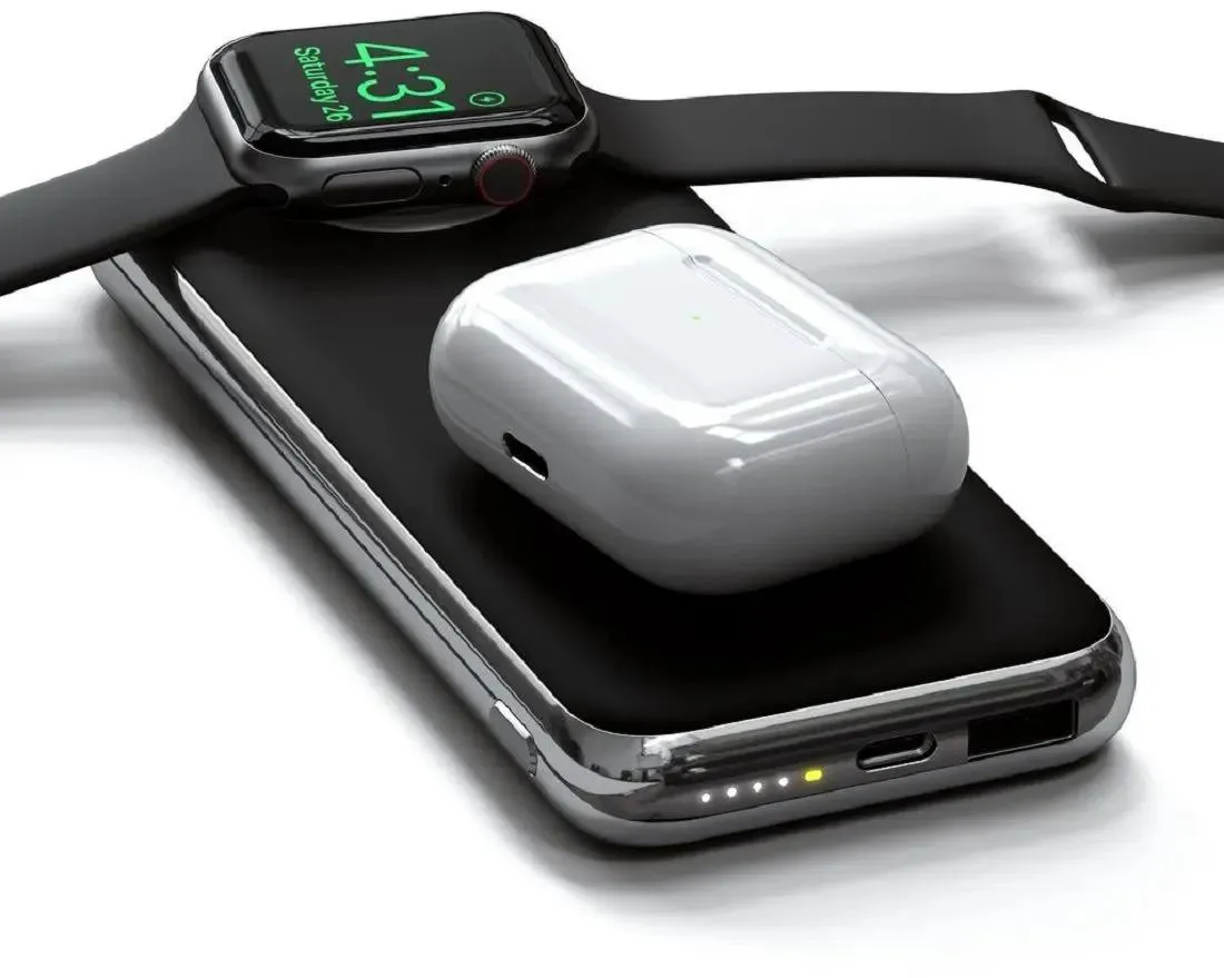 Satechi Quatro Wireless Power Bank – Space Gray – идеальный аккумулятор для подзарядки ваших гаджетов на ходу. Он оснащен беспроводной зарядкой Qi, встроенной Apple Watch зарядкой, а также USB-C PD и USB-A портами для гибкости зарядки. С емкостью 10000 мАч, он с легкостью заряжает Ваши устройства несколько раз. Компактный размер и элегантный дизайн делают его идеальным спутником для путешествий.
