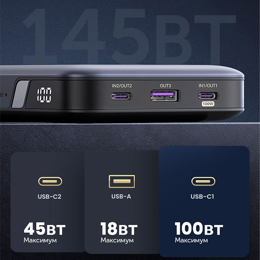 Внешний аккумулятор UGREEN PB205 (90597A) PD 145W Power Bank обладает емкостью 25000mAh, которая обеспечит длительное время работы вашему устройству. Благодаря быстрому заряду PD 145W, он способен мгновенно заряжать ваш смартфон, планшет или ноутбук. Цвет аккумулятора – стильный серый. Компактный размер аккумулятора позволяет брать его с собой в любое путешествие или командировку.