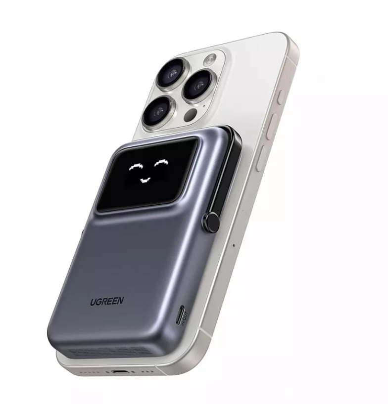 Внешний аккумулятор UGREEN PB572 (45327) UNO 10000mAh Mini Magnetic Wireless Robot 20W Power Bank с держателем. Цвет: серый