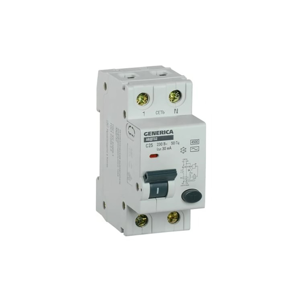 Выключатель автом. дифф. тока IEK АВДТ 32 Generica (MAD25-5-025-C-30) 25A тип C 6kA 30мА AC 2П 230В