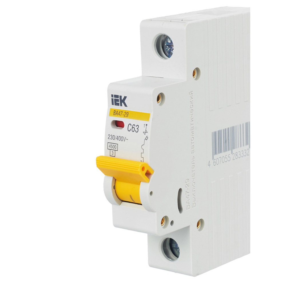 Выключатель автоматический IEK ВА47-29 (MVA20-1-063-C) 63A тип C 4.5kA 1П 230/400В 1мод белый (упак.