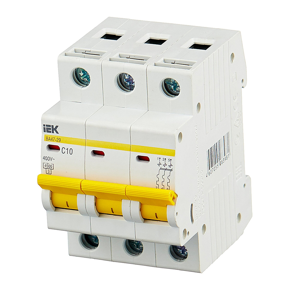 Выключатель автоматический IEK ВА47-29 (MVA20-3-010-C) 10A тип C 4.5kA 3П 400В 3мод белый (упак.:1шт