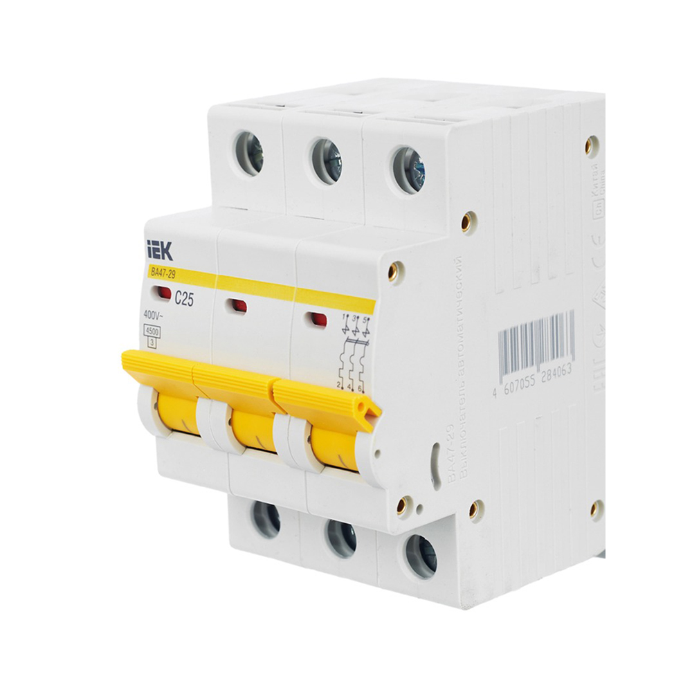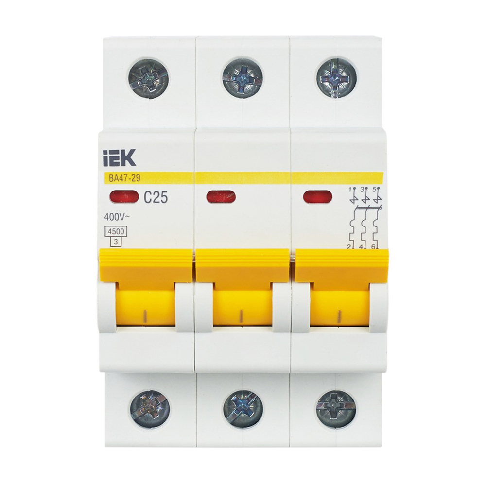 Выключатель автоматический IEK ВА47-29 (MVA20-3-025-C) 25A тип C 4.5kA 3П 400В 3мод белый (упак.:1шт