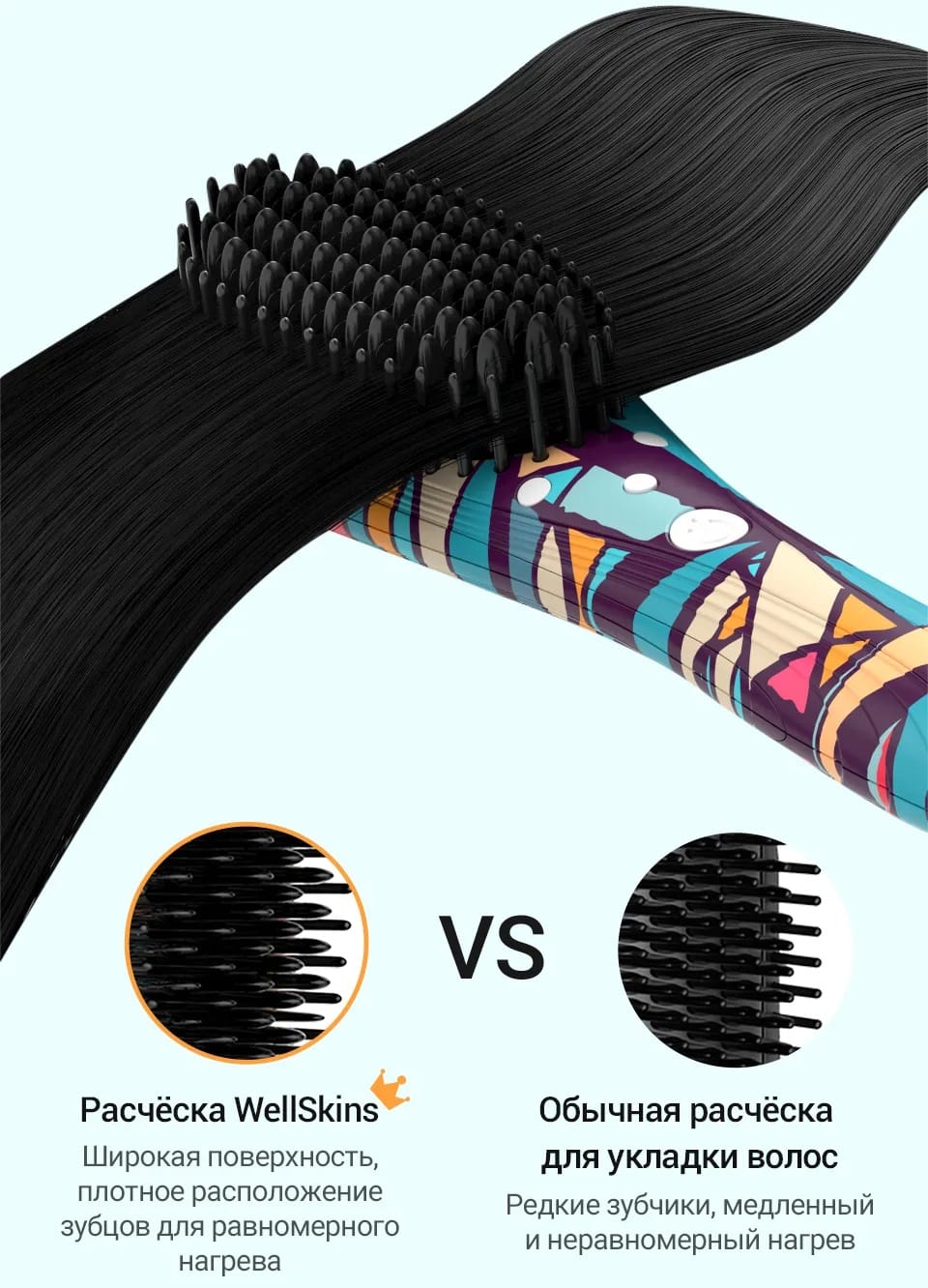Сделана качественно, но дерет волосы за счет необычного исполнения зубьев и выпрямляет с трудом. Проще и быстрее обычным утюжком…