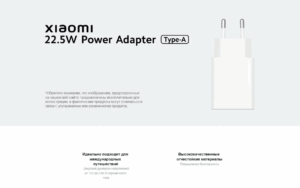 Xiaomi 22.5W Power Adapter – верный помощник для подзарядки своих гаджетов. Зарядное устройство подходит для телефонов любой марки. Блок самостоятельно подбирает напряжение от 5 до 12 В. Устройство устойчиво к любым ударам и трещинам поскольку сделан из прочного пластика.